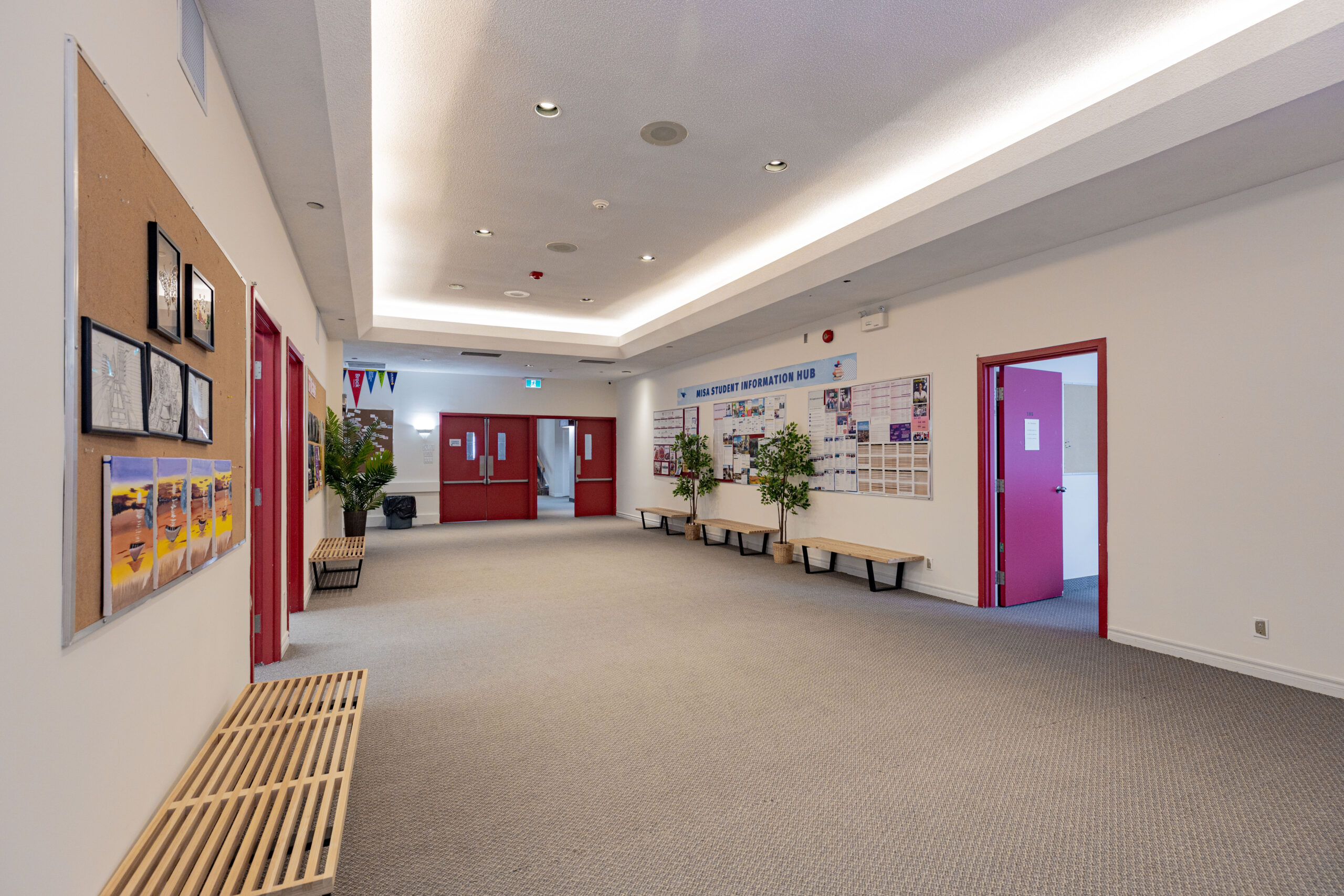 多功能演讲厅配备齐全的液晶投影仪和音响系统,可举办各种活动,从学生主导的才艺表演、公开演讲活动、学校集会,到客座讲座、研讨会、专题讨论会、电影放映、演示和工作坊(等等)。它是我们教学设施的核心,是一个以学生为中心、开展学术性、多元文化活动的教育空间。